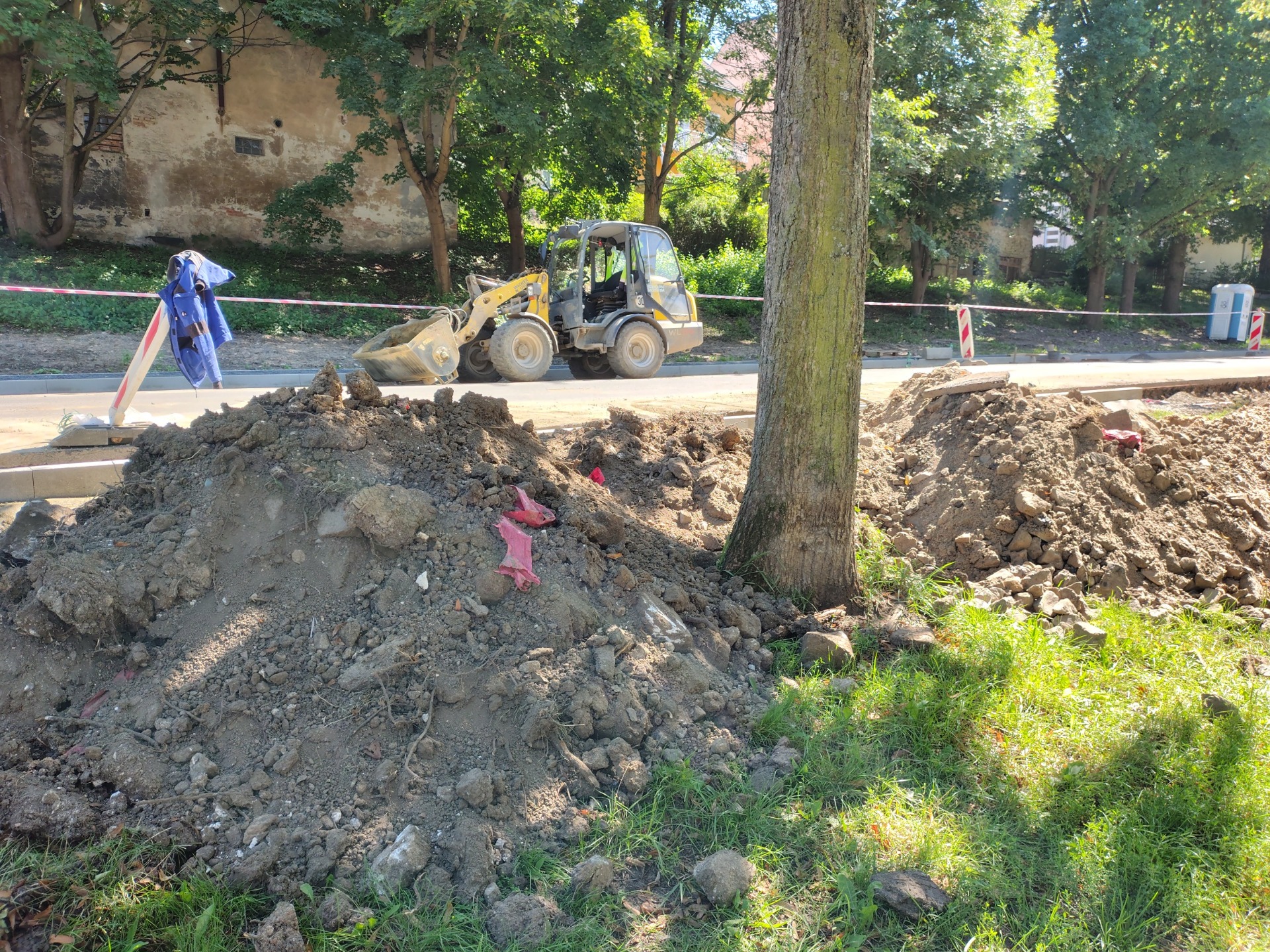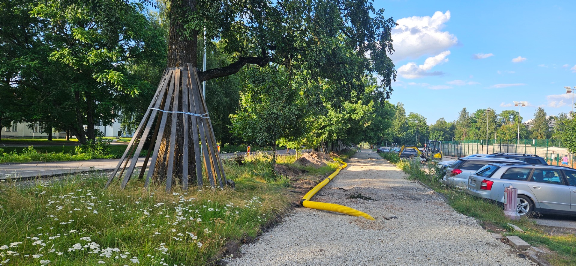 Vzhledem k blízkosti rekonstruované komunikace nemohlo být plně využito ochranné pásmo kořenového prostoru. Zvolena tedy byla individuální ochrana kmene, ruční výkop v chráněnném kořenovém prostoru (chkp), překrytí a zavlažování výkopem odhalených či zastřižených kořenů, skládka výkopového materiálu mimo nebo max. v 1/3 plochy chkp.